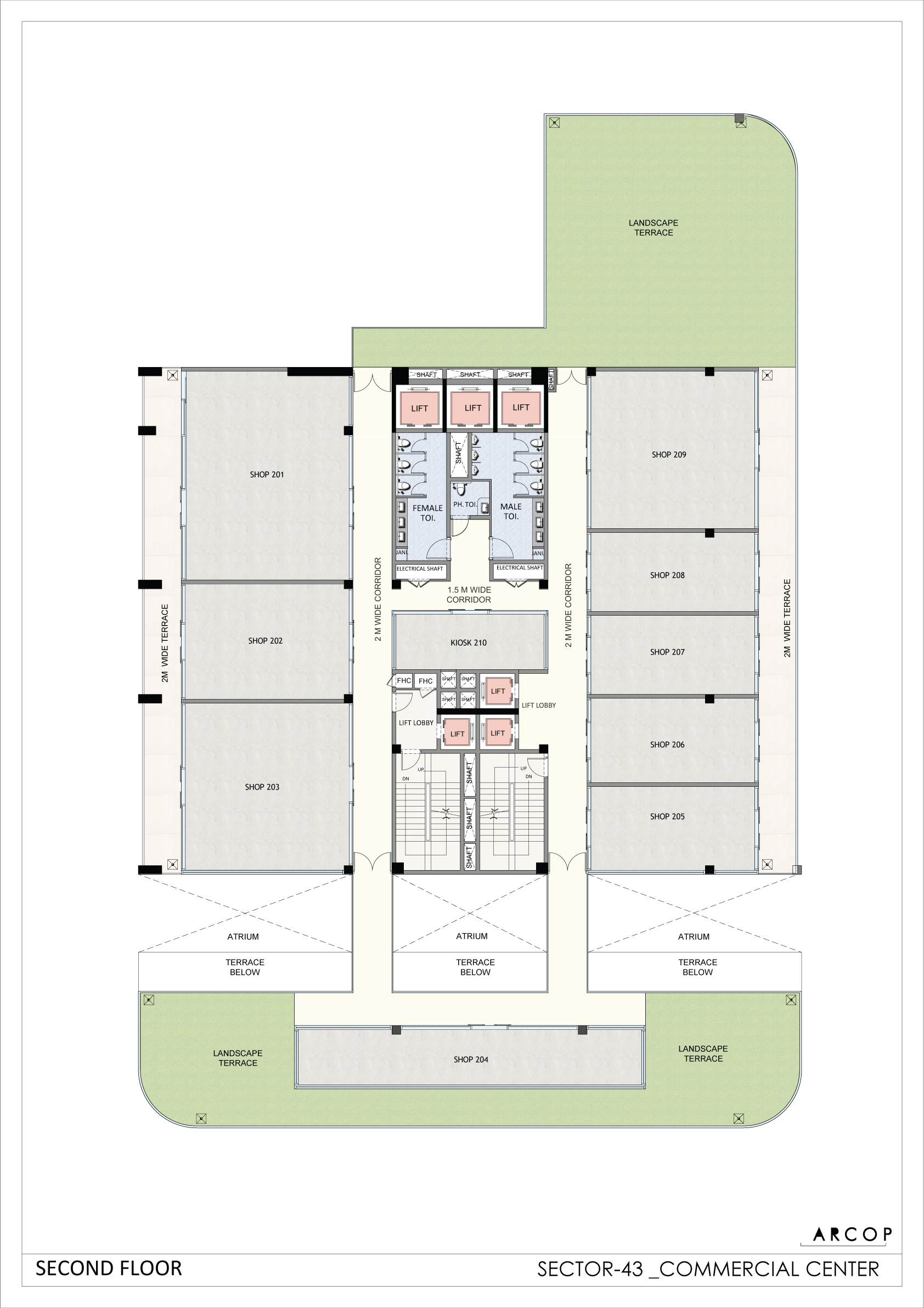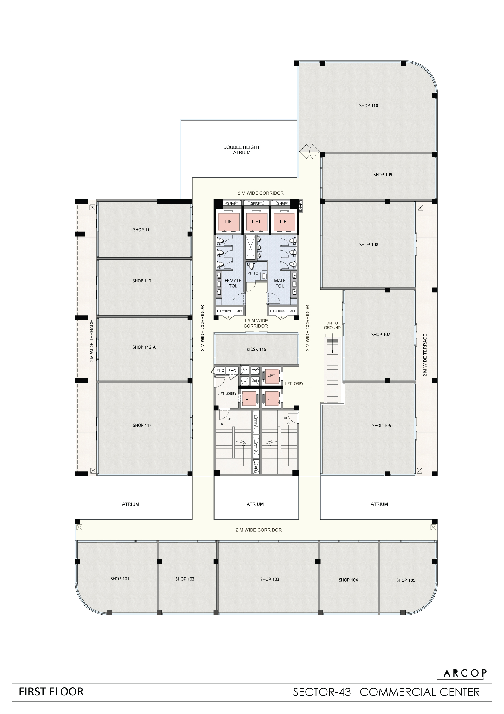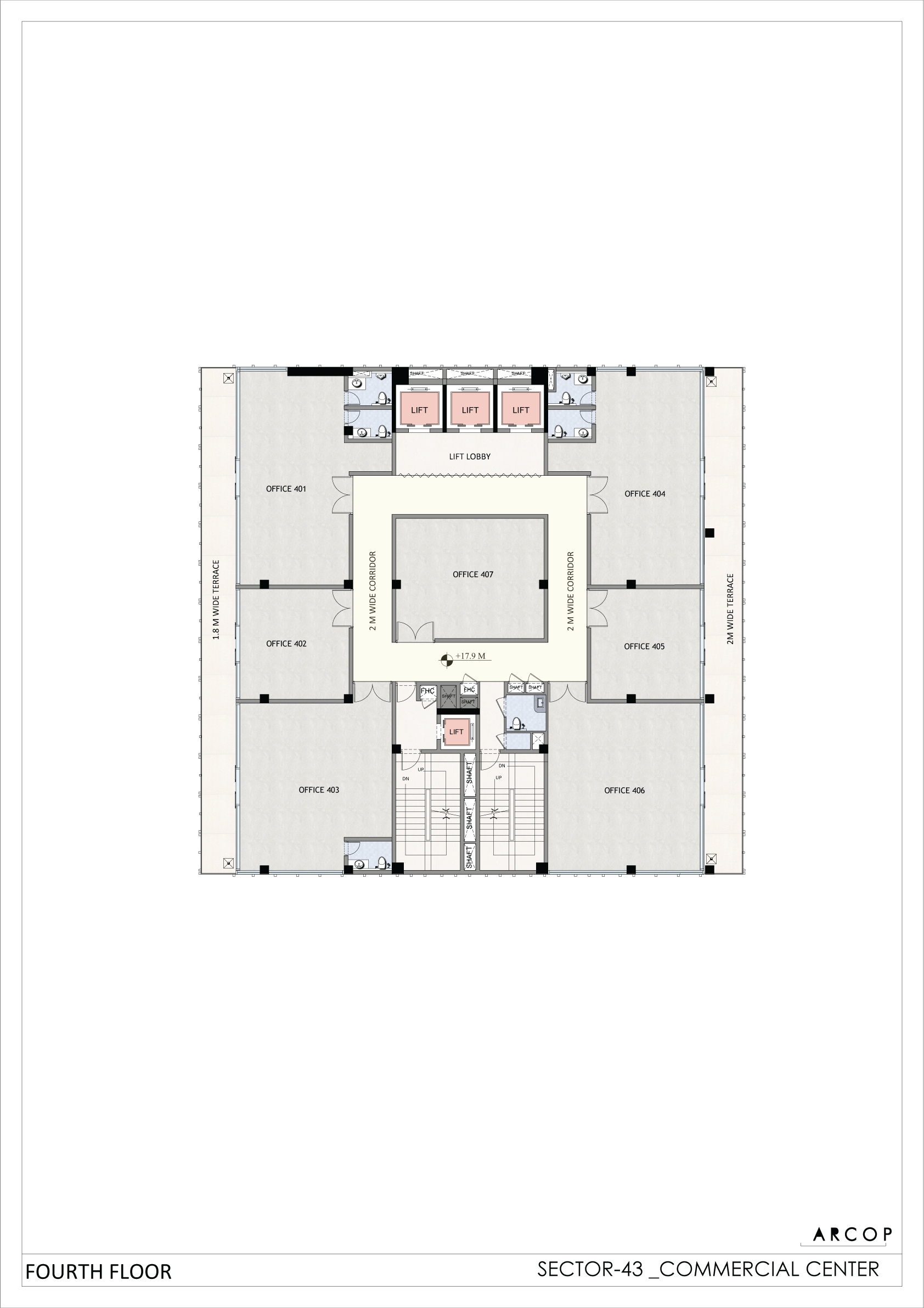 Offering a seamless blend of modern design for office, Retail & Restaurants. Building with a height of 105 mtr. 3 basement & G+24. Ultra-premium showrooms, magnificent frontage, captive HNI catchment, ample car parking & dedicated drop-off zone. Ground floor height 5.8 m, first floor height 4.2m, pedestrian-friendly design.