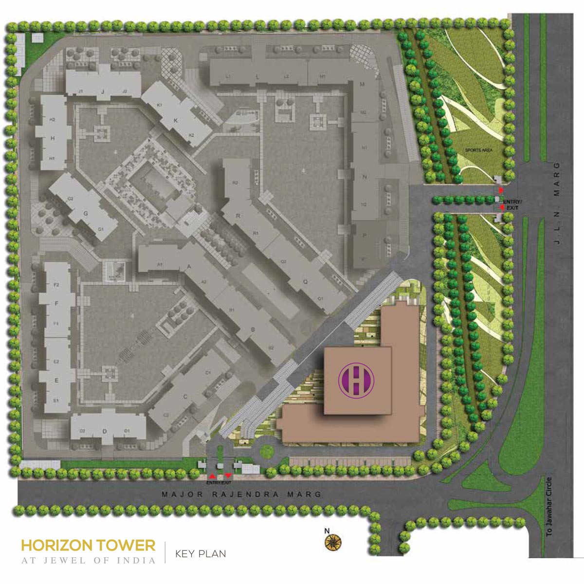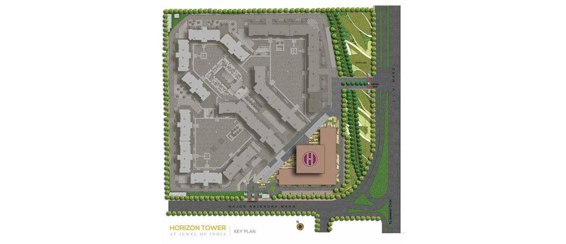 - horizon joi occupies a very desirable location on the main sector road. Built around verdant wide-open spaces, and sprawling gardens, its a masterpiece of design and planning finesse. The lavish condominium floor plan ranges from 4-5-bedroom luxury living space providing a personal paradise in the city