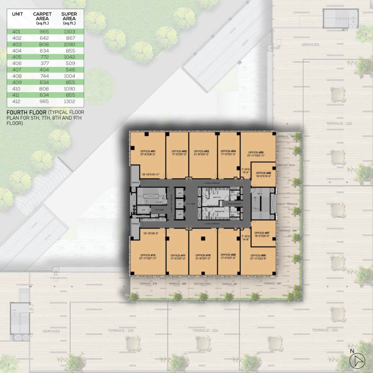 - Two units per floor with two high-speed lifts.