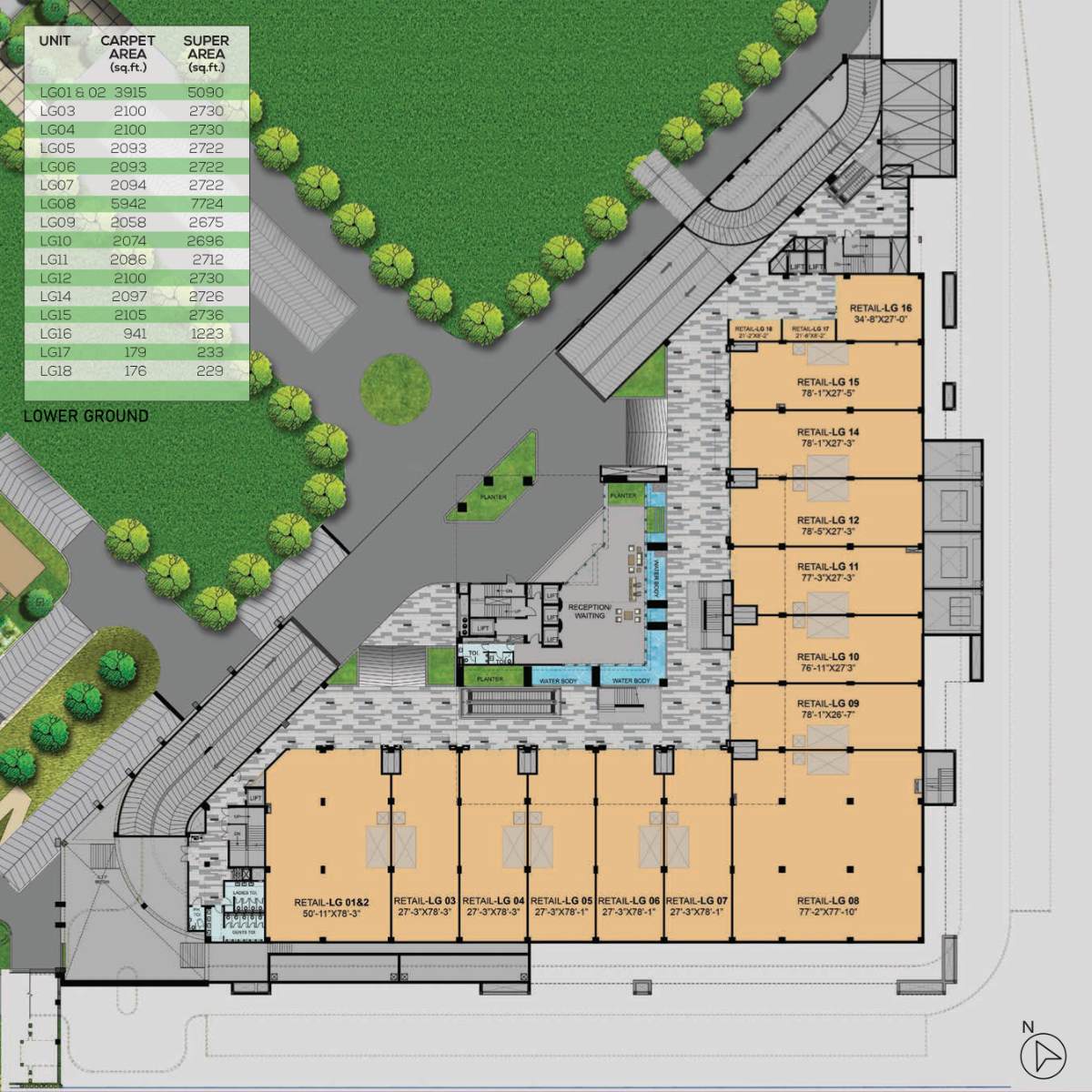 - Track, beautifully landscape parks with water body within the jogging complex.